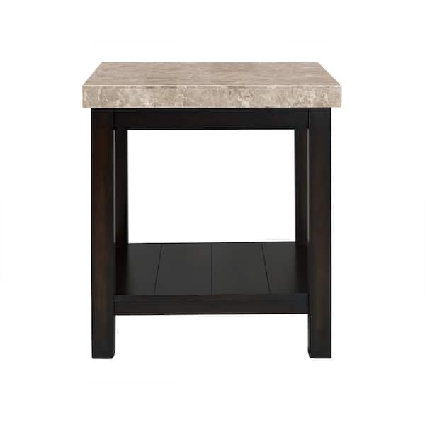 Caleb 22 in. Espresso Square Marble End Table
