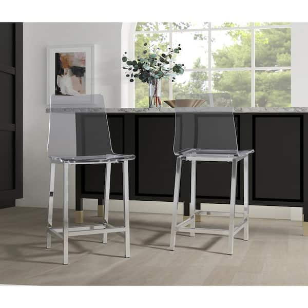 Crystal 30 in. Clear High Back Metal Frame Bar Stool with Acrylic Seat (Set of 2)