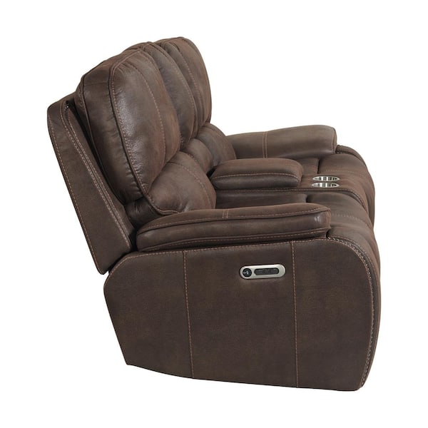 Grover 80 in. Heritage Coffee Solid Power Motion Polyester 2 Seat Loveseat with Power Headrest and Console