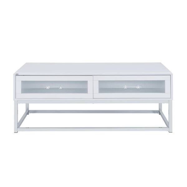 Indira 47 in. Glossy White Rectangle Wood Coffee Table with LED and Battery Pack