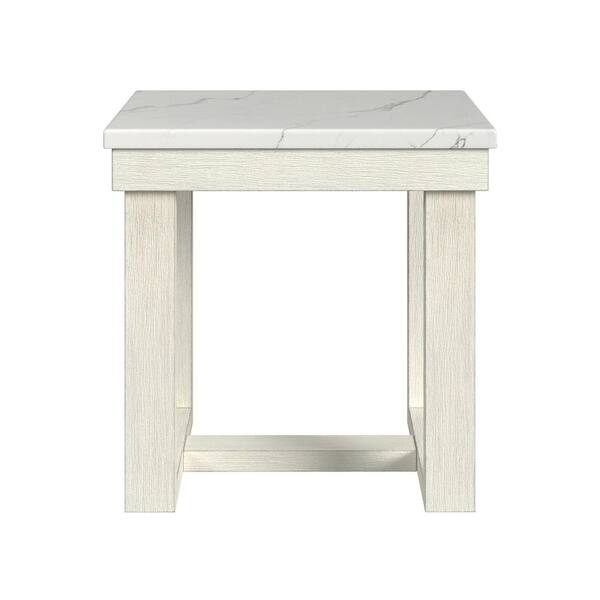 Jocelyn 24 in. Brushed Square White End Table with Faux Marble Top