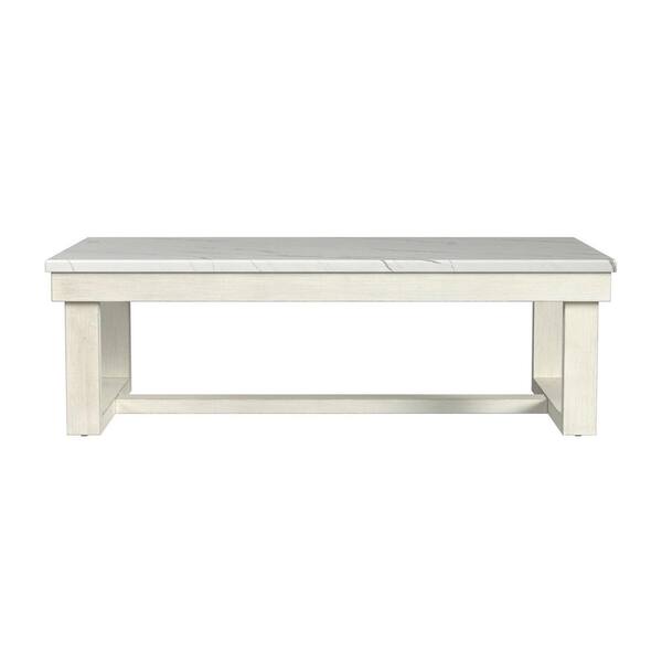 Jocelyn 52 in. Brushed White Rectangle Coffee Table with Faux Marble Top