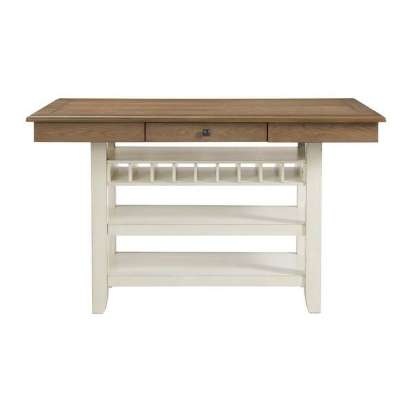 Marlow Farmhouse Walnut and Antique White Wood 60 in. 4-Legs Rectangular Counter Table Seats 6