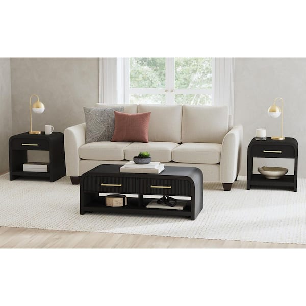 Ridgemont 24 in. Black with Grain Rectangle Wood End Table with USB