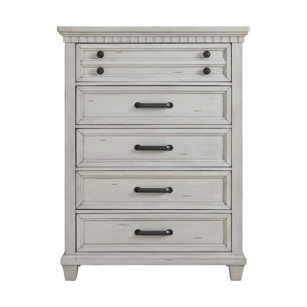 Windom Antique White 5-Drawer 40 in. Chest of Drawers