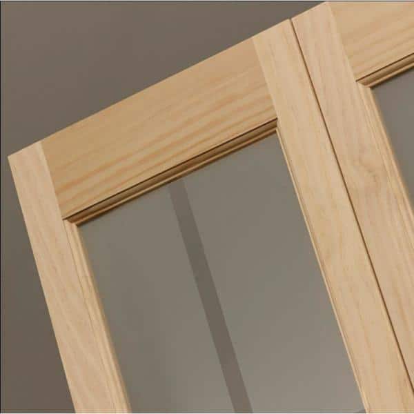24 in. x 80 in. Mission Unfinished Pine Full-Lite Decorative Glass Solid Core Wood Bi-fold Door