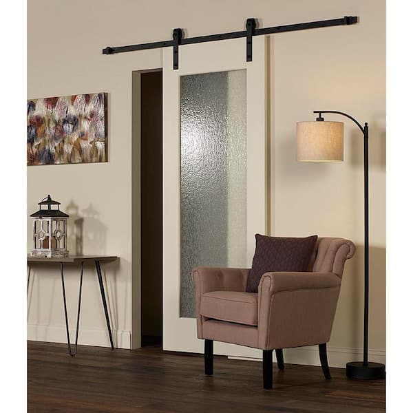 34 in. x 84 in. Timber Hill Rain Glass and Unfinished Pine Wood Sliding Barn Door Slab with Hardware Kit