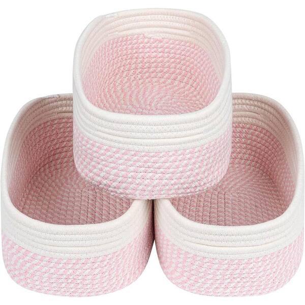 Pink 12 in. x 5 in. Cotton Decorative Basket (Set of 3) With Built-in Handles