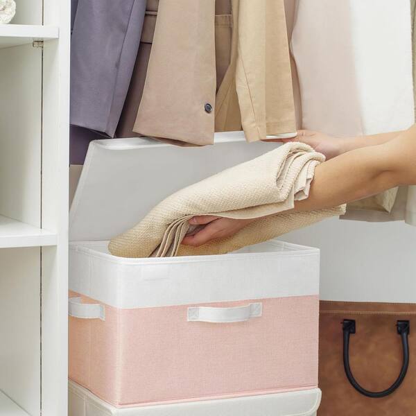 Pink 15.8 in. x 10 in. Linen Decorative Basket Set of 2
