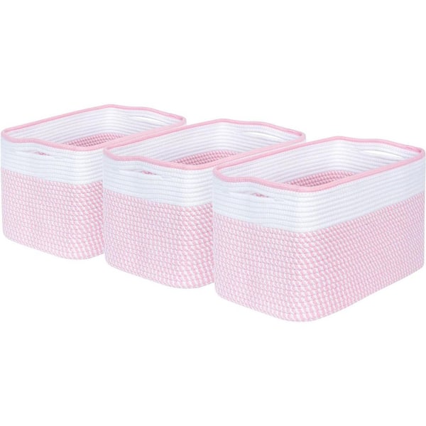 Pink 15 in. x 10 in. Cotton Decorative Basket Set of 3