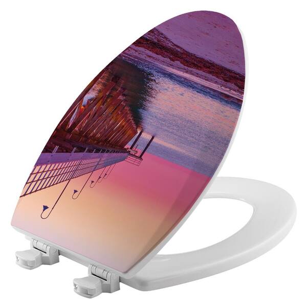 Pink Jetty Elongated Closed Front Toilet Seat in White