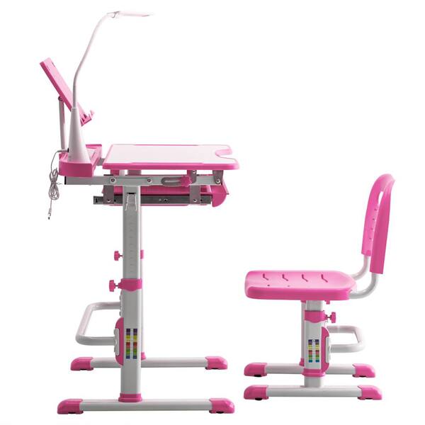 Pink Kids Table and Chair Set with Desk Lamp