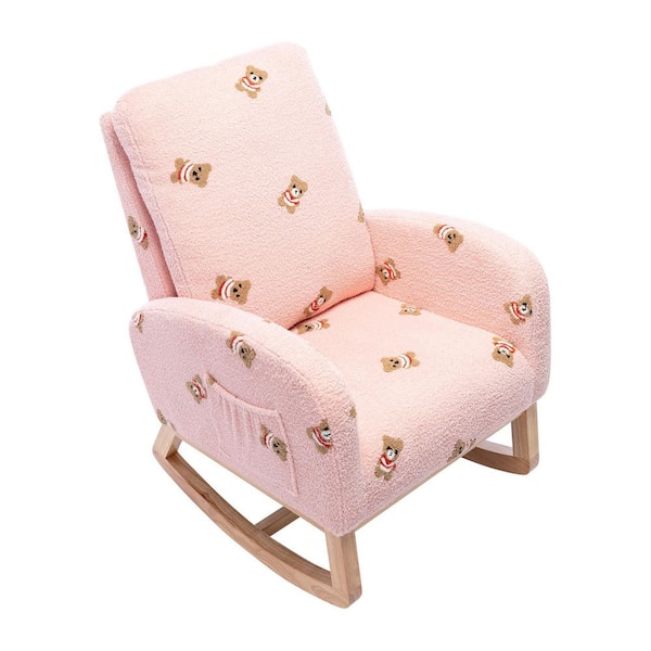 Pink Polyester Rocking Chair with High Back and Side Pocket for Kids Room
