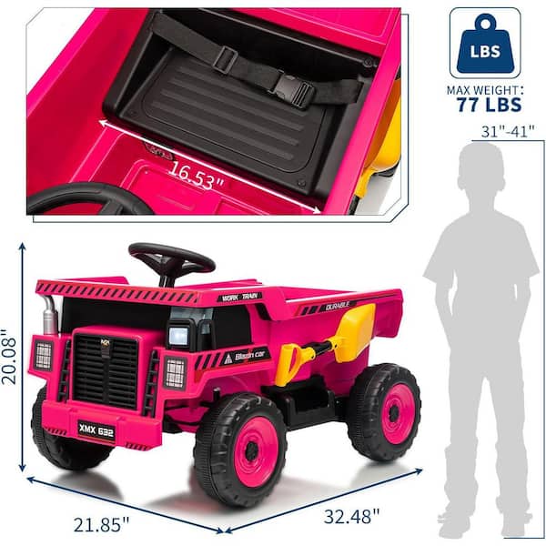 Pink Ride On Dump Truck for Kids with Remote Control, 16.5 in. Spacious Seat,Dump Bed,Shovel,Music,Headlights,Soft Start