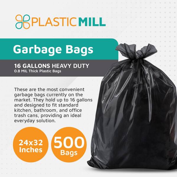 24 in. W x 32 in. H 12 Gal. to 16 Gal. 0.8 mil Black Trash Bags (500-Count)