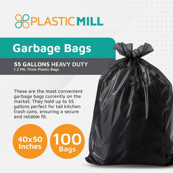 40 in. W x 50 in. H. 55 Gal. 1.2 mil Black Trash Bags (100-Count)