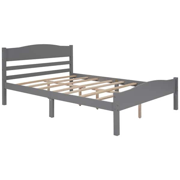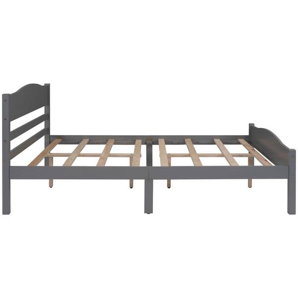 Platform Bed with Horizontal Stripe Hollow Shape Headboard Full size Gray