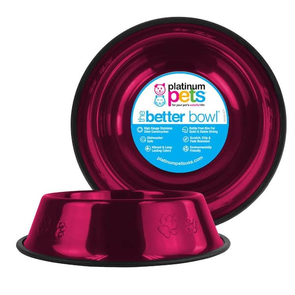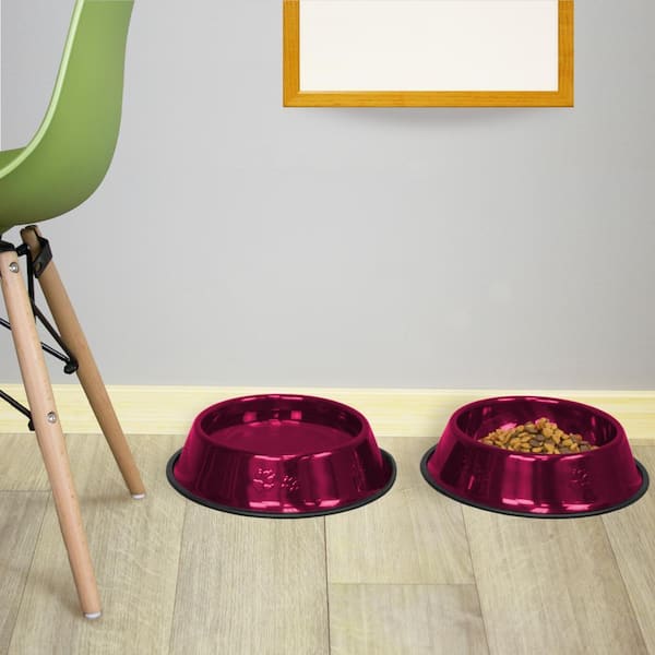 Embossed Non-Tip Stainless Steel Cat/Dog Bowl, Raspberry Pop
