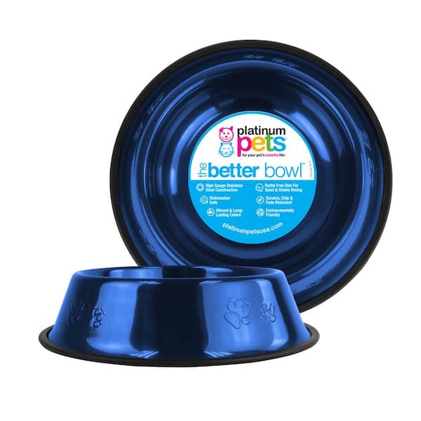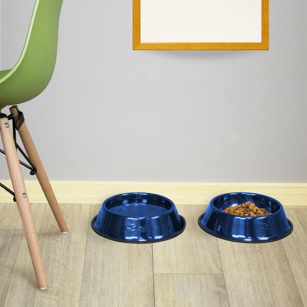 Embossed Non-Tip Stainless Steel Cat/Dog Bowl, Sapphire Blue