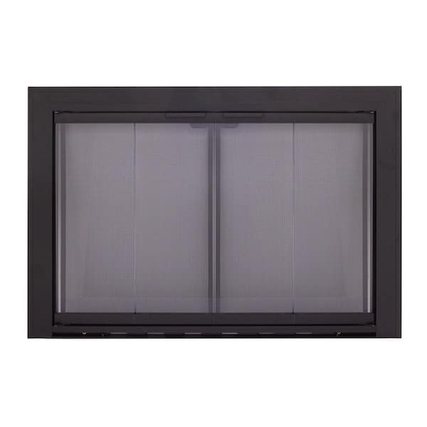 Linear Aluminum XX-Large Black Glass Fireplace Doors