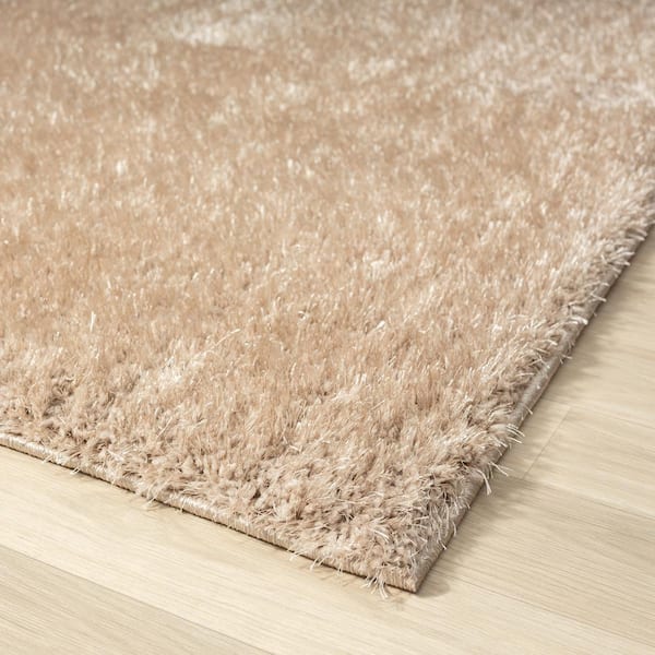 Plush Collection Tan 5x7 Fuzzy Solid Shag Polypropylene Area Rug