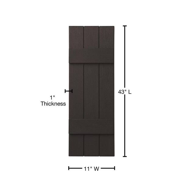 11 in. x 43 in. Polypropylene Plastic 3-Board Closed Board and Batten Shutters Pair in Brown