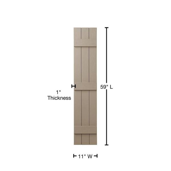 11 in. x 59 in. Polypropylene Plastic 3-Board Closed Board and Batten Shutters Pair in Pebblestone Clay