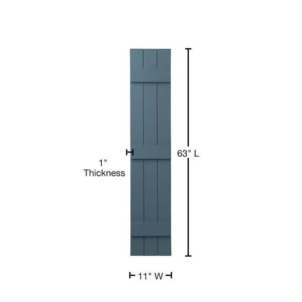 11 in. x 63 in. Polypropylene Plastic 3-Board Closed Board and Batten Shutters Pair in Coastal Blue