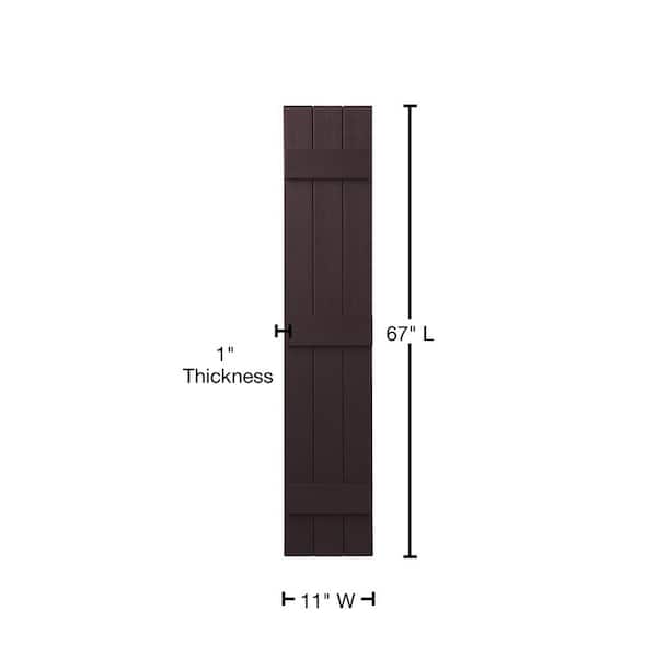 11 in. x 67 in. Polypropylene Plastic 3-Board Closed Board and Batten Shutters Pair in Winestone