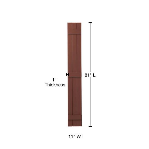 11 in. x 81 in. Polypropylene 3-Board Closed Board and Batten Shutters Pair in Red