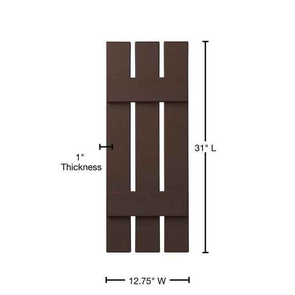 12 in. x 31 in. Polypropylene 3-Board Open Board and Batten Shutters Pair in Terra Brown