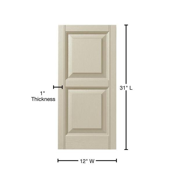 12 in. x 31 in. Raised Panel Polypropylene Shutters Pair in Sand Dollar
