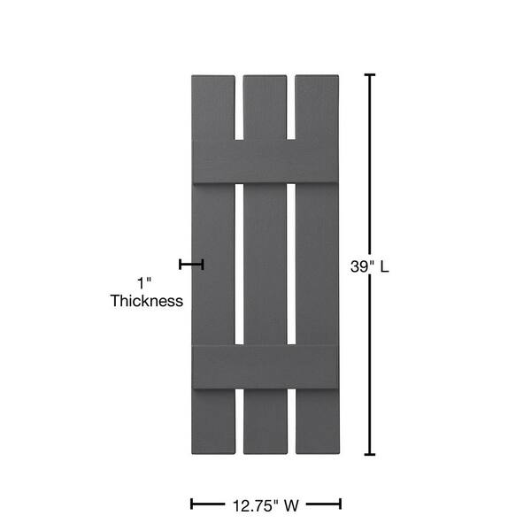 12 in. x 39 in. Polypropylene 3-Board Open Board and Batten Shutters Pair in Gray