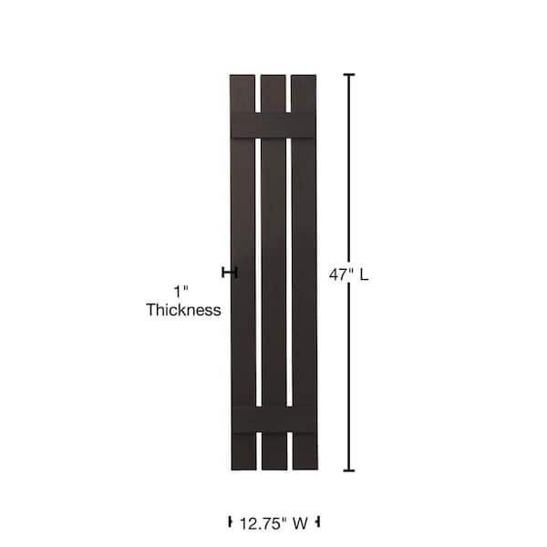 12 in. x 47 in. Polypropylene 3-Board Open Board and Batten Shutters Pair in Brown