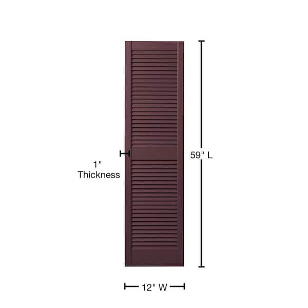 12 in. x 59 in. Open Louvered Polypropylene Shutters Pair in Vineyard Red