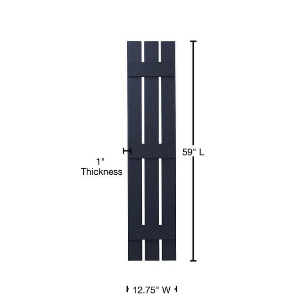 12 in. x 59 in. Polypropylene 3-Board Open Board and Batten Shutters Pair in Dark Navy