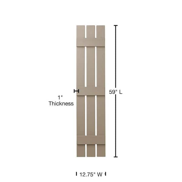 12 in. x 59 in. Polypropylene 3-Board Open Board and Batten Shutters Pair in Pebblestone Clay