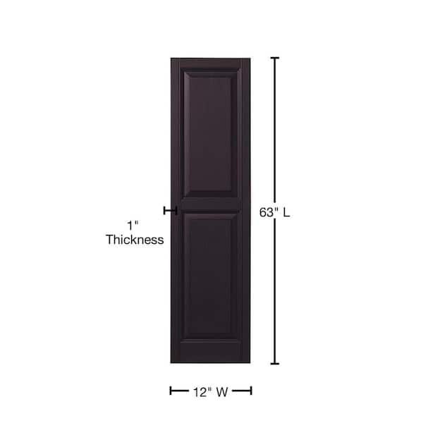 12 in. x 64 in. Raised Panel Polypropylene Shutters Pair in Dark Berry