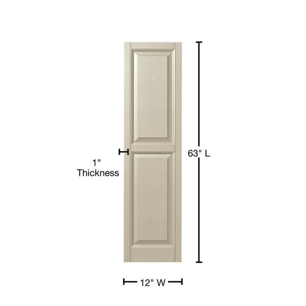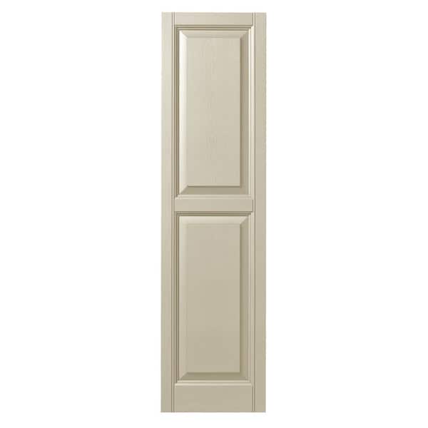12 in. x 64 in. Raised Panel Polypropylene Shutters Pair in Sand Dollar