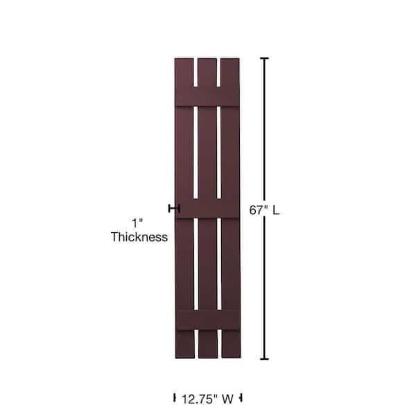 12 in. x 67 in. Polypropylene 3-Board Open Board and Batten Shutters Pair in Vineyard Red