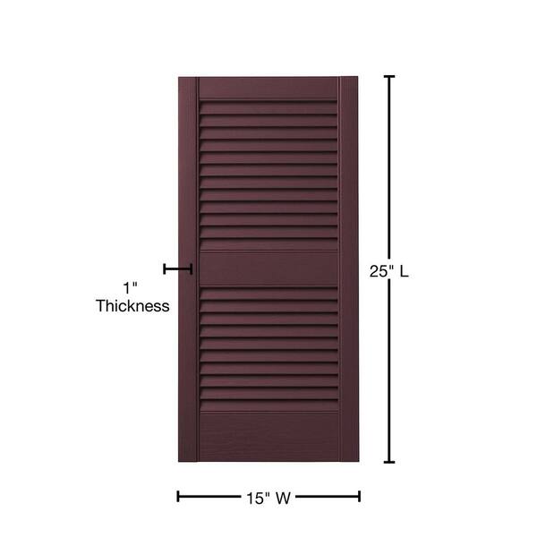 15 in. x 25 in. Open Louvered Polypropylene Shutters Pair in Vineyard Red