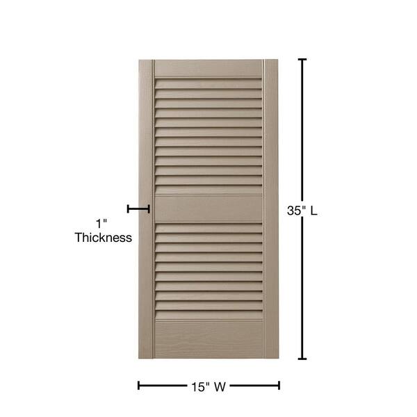 15 in. x 35 in. Open Louvered Polypropylene Shutters Pair in Pebblestone Clay