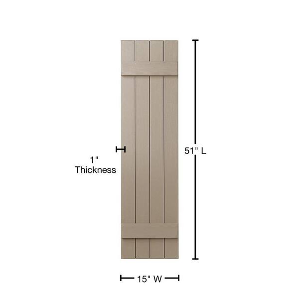 15 in. x 51 in. Polypropylene 4-Board Closed Board and Batten Shutters Pair in Pebblestone Clay