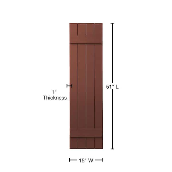 15 in. x 51 in. Polypropylene 4-Board Closed Board and Batten Shutters Pair in Red