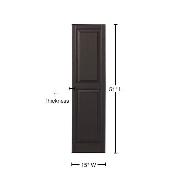 15 in. x 51 in. Raised Panel Polypropylene Shutter Pair in Brown