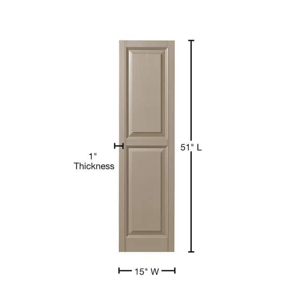 15 in. x 51 in. Raised Panel Polypropylene Shutters Pair in Pebblestone Clay