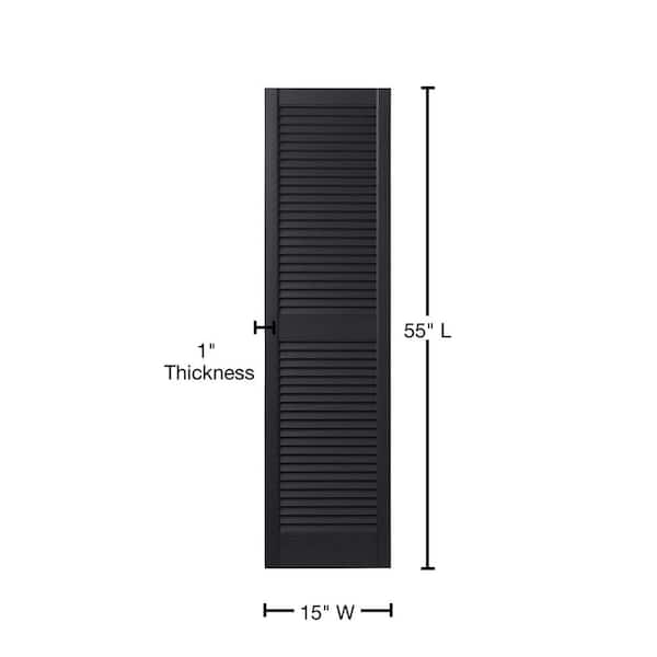15 in. x 55 in. Open Louvered Polypropylene Shutters Pair in Black