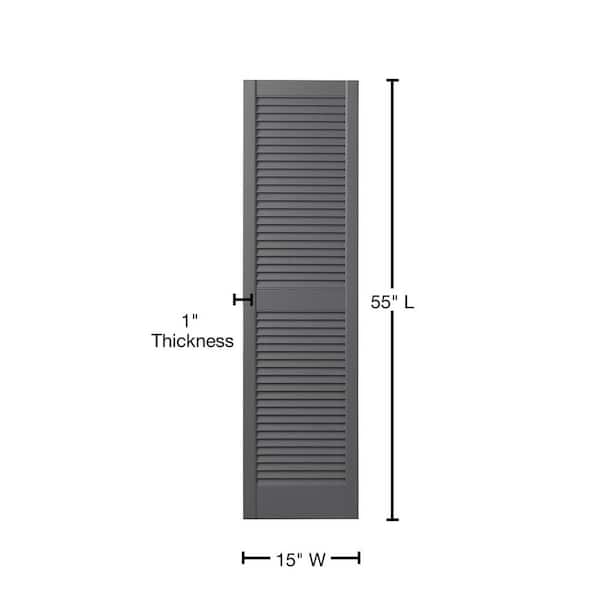 15 in. x 55 in. Open Louvered Polypropylene Shutters Pair in Gray