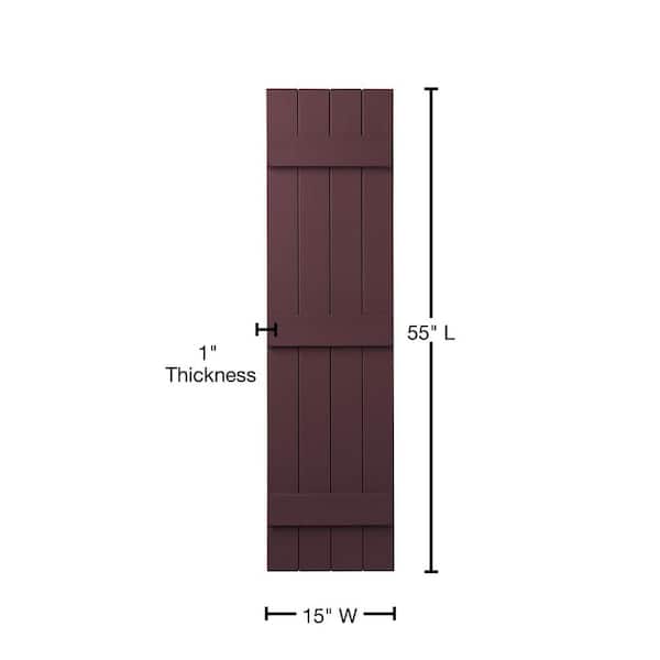 15 in. x 55 in. Polypropylene 4-Board Closed Board and Batten Shutters Pair in Vineyard Red