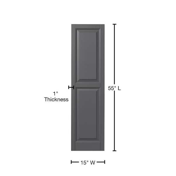 15 in. x 55 in. Raised Panel Polypropylene Shutter Pair in Gray